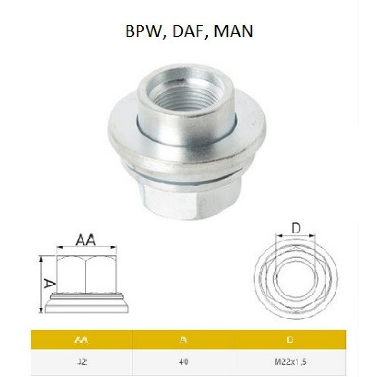 Гайка колеса з шайбою MAN, DAF, BPW, IVECO, MERCEDES