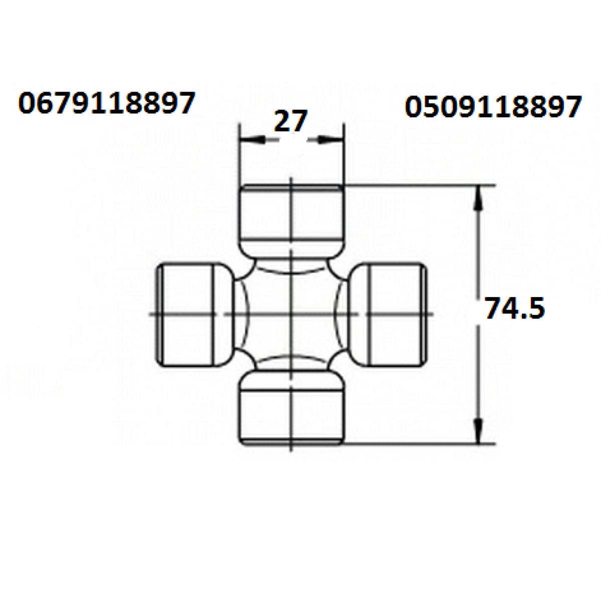 Хрестовина кардану (27х74,5) NISSAN, FORD, LADA, LAND ROVER, OPEL, VOLVO,