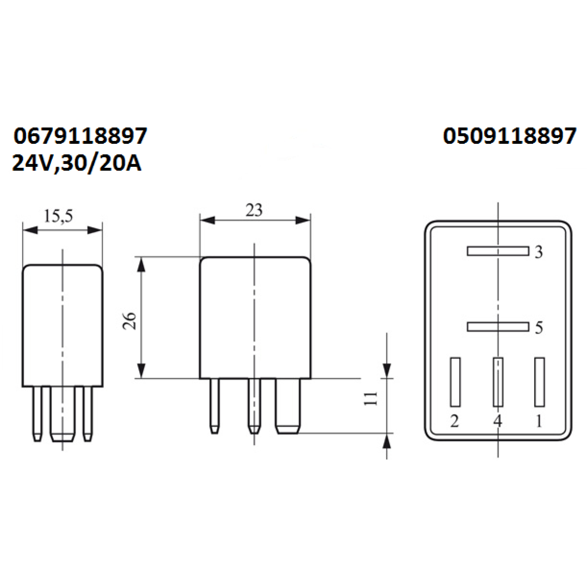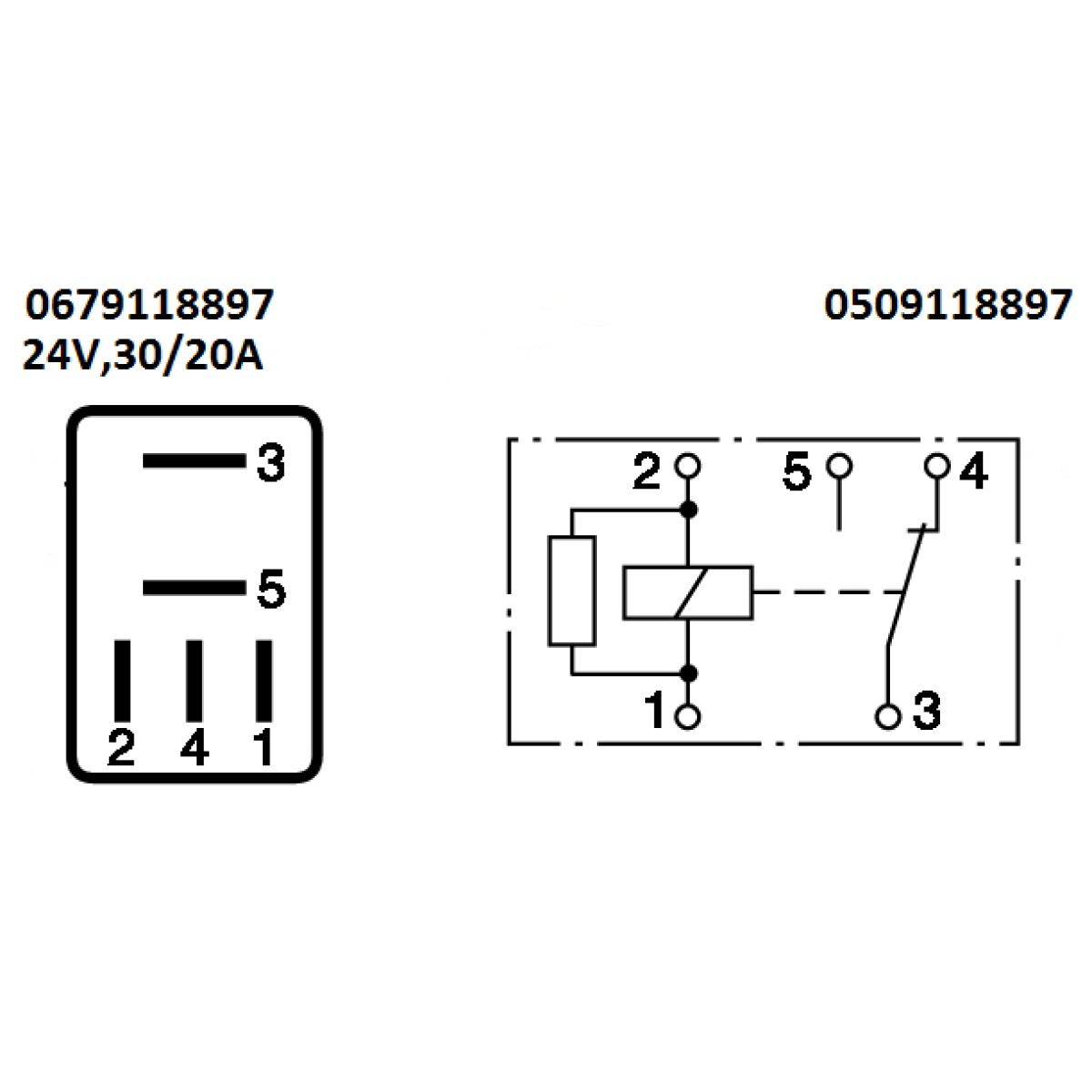 Реле універсальне 24V, 30/20А, 5-ти контактне, з резистором