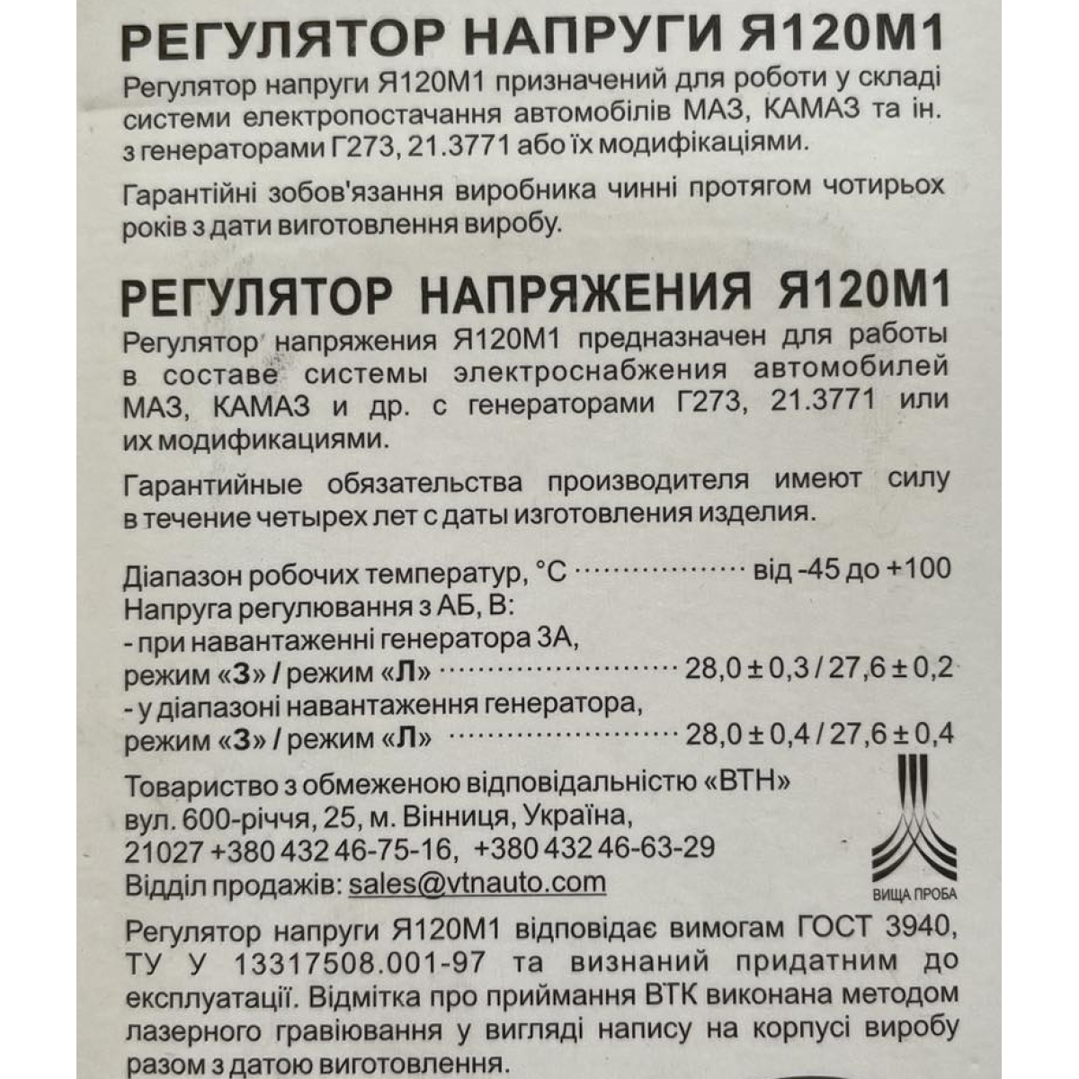 Реле інтегральне Я120М1 (28В,5А) ГАЗ, КАМАЗ, МАЗ, КРАЗ, ЛАЗ, ПАЗ, УРАЛ